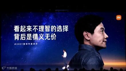2021雷军年度演讲现场,后为小米联合创始人团队合影