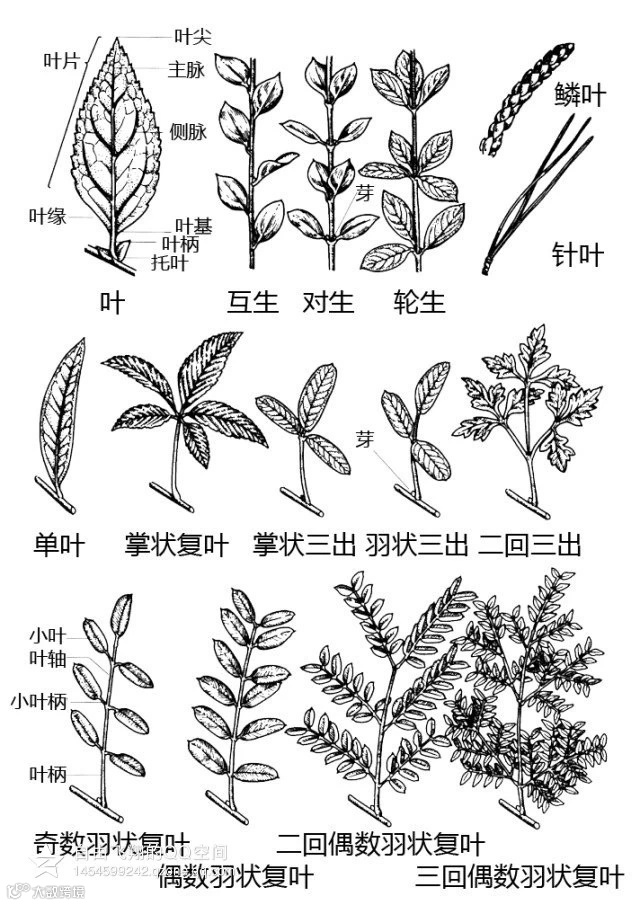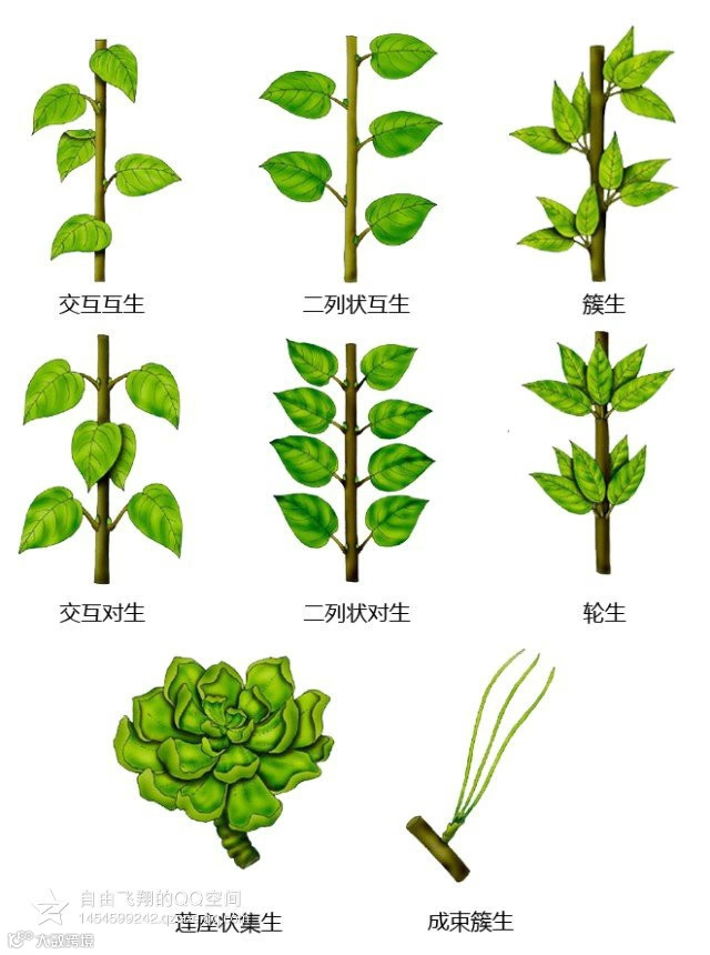 叶在茎或枝条上排列的方式叫叶序,常见的叶序有: