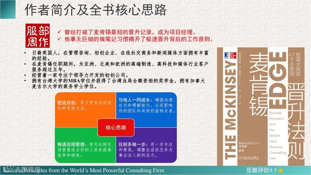 原书作者曾经打破了麦肯锡最短的晋升纪录,成为了麦肯锡的项目经理,而他事无巨细的做笔记习惯揭开了极速晋升背后的工作的47个原则。