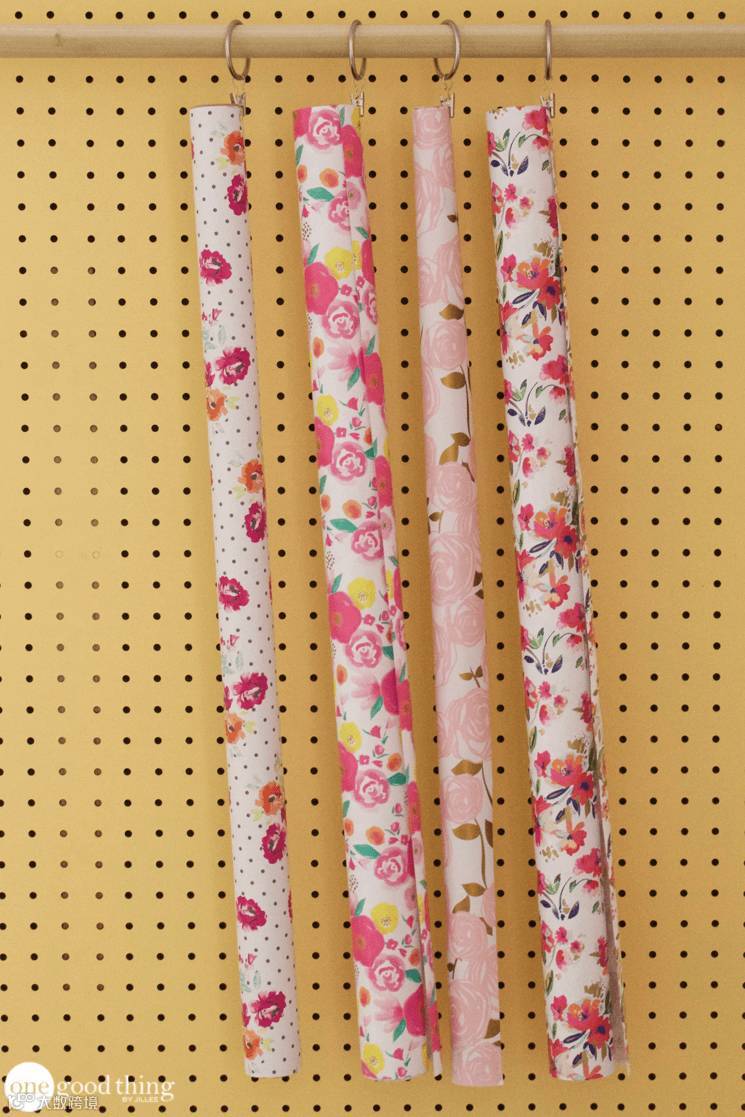 ▼礼品包装纸、墙纸卷成一卷卷夹起来,款式分明