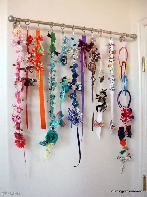 ▼小朋友总是爱买各种各种的夹子皮筋,混在一起一堆堆都打结,一个个的分开挂,想用哪个拿哪个,自己的项链首饰之类的,也可以往上夹