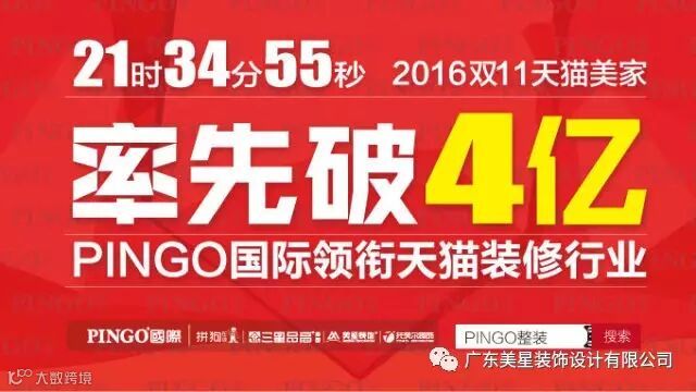 2016年双十一当天销售额破4亿,成为家装品类第一!