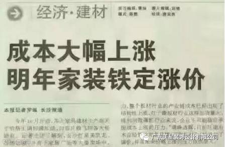 2017年,装修市场成本涨价预期达到20%~35%,涨价已是大趋势,早买就是早赚到。