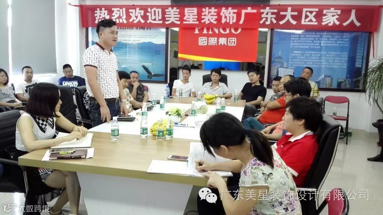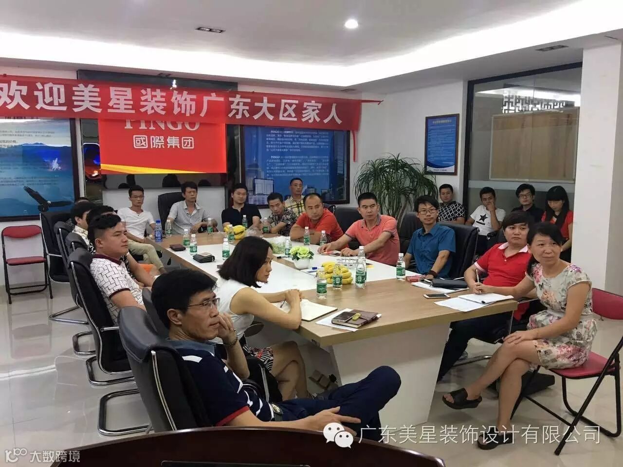 美星装饰广东大区:增城、乐从、韶关、北滘、惠阳、兴宁、梅州、中山、塘厦、罗定、高州、江门、阳江、鹤山、清远、大沥、罗村、白云、惠州河南岸、惠州江北等20家分公司的经理到场参加了本次会议。