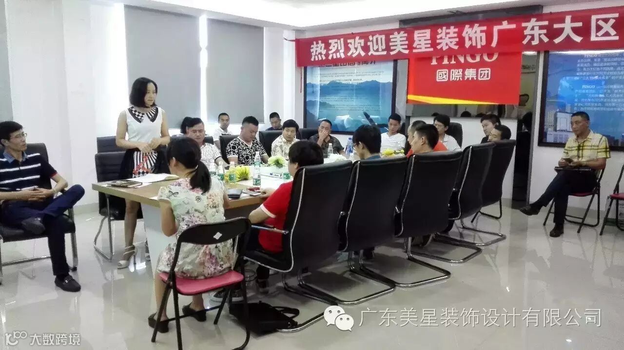 会议开始,PINGO国际集团美星事业部运营总监冷亚军给大家播放了“PINGO国际和美星装饰”的企业宣传片,并对美星装饰VI及美星标志作了详细的介绍。