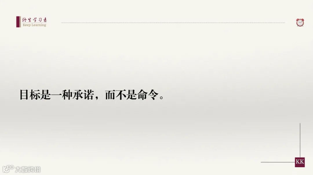 目标是一种承诺,而不是命令。成为一名管理者就意味着“承担责任”。正是因为管理者的目标应该体现企业的总目标需求,而不是体现老板或他本人的意图,因而他必须以积极的态度做出承诺。