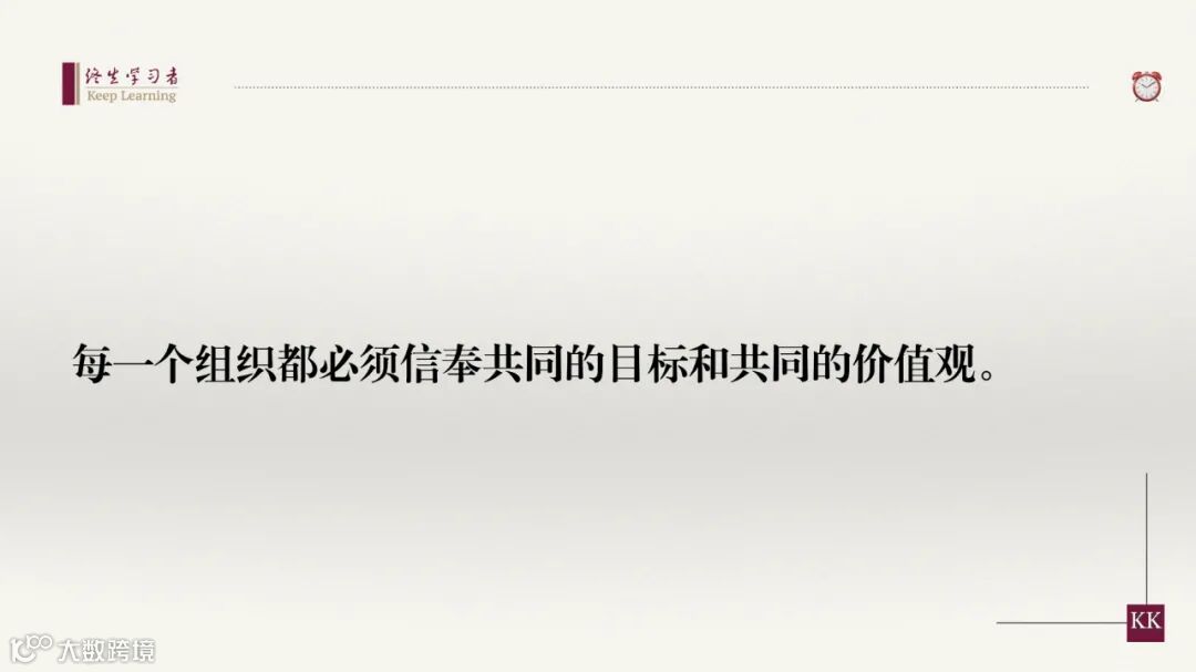 每一个组织都必须信奉共同的目标和共同的价值观。没有这种承诺,也就没有组织,有的只是一群乌合之众。