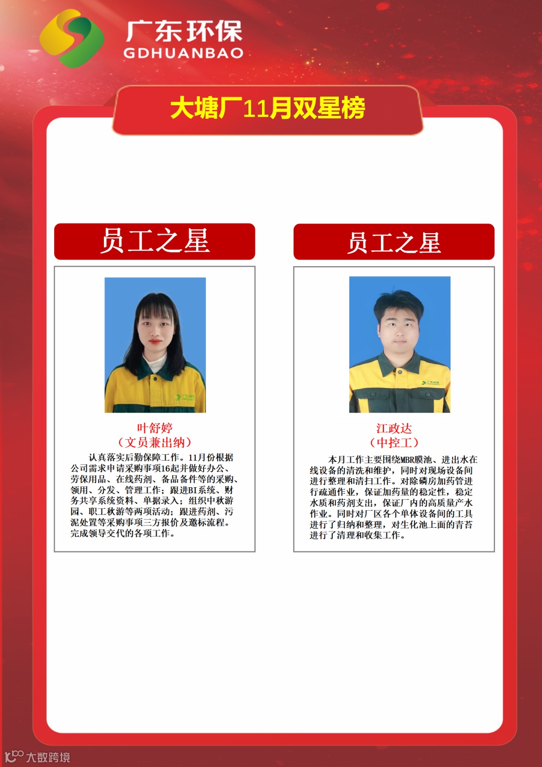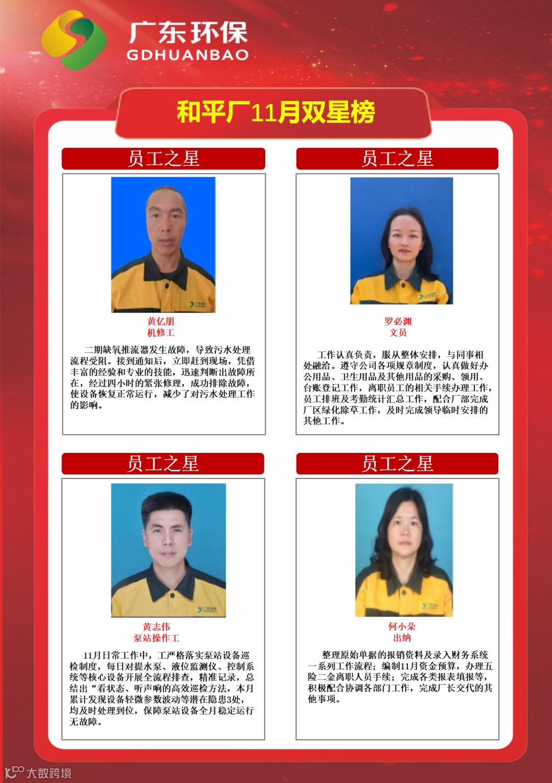 【双星评选】梅河区域中心2025年11月份“双星”评选结果揭晓 广业环保集团梅河区域中心