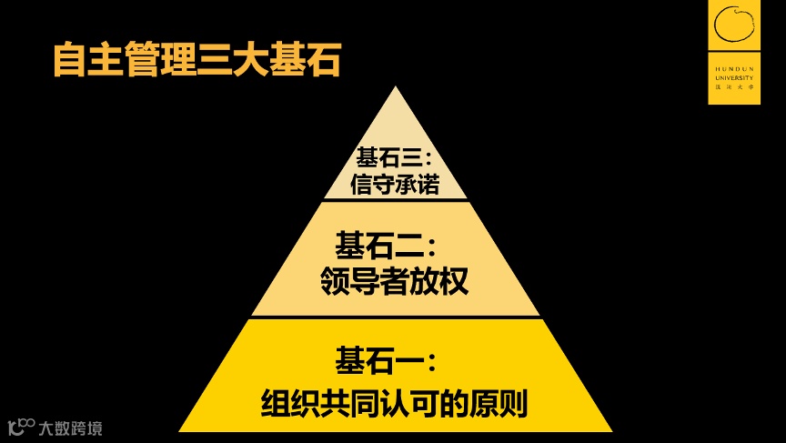 让人在工作中管理自己,就像一个人自己决定和谁约会、结婚、去哪里读书以及买不买车一样。VISA的创始人 Dee Hock 曾说,"The complex rules cause simple, stupid behavior, simple rules allow for complex, intelligent behavior”(简单规则会为复杂、充满智慧的行为创造条件,但复杂的规则则会引起不加思考、愚蠢的举动),组织同样可以依据简单、明了的规则运行。