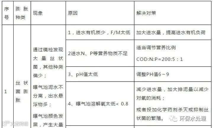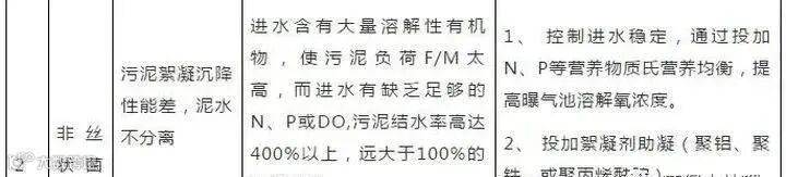 解决办法:增加负荷均衡营养,提高水温,改善污泥生长环境。