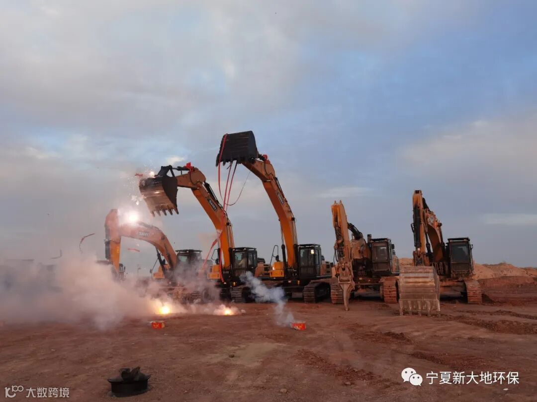 9月25日上午,施工现场彩旗招展、鞭炮轰鸣,宁夏新大地环保科技工程有限公司承建的盐池县(盐池工业园区)一般工业固废处置及利用项目新进两台SY375型挖掘机。为加快项目进度,实现如期完工计划增添强有力的保障。