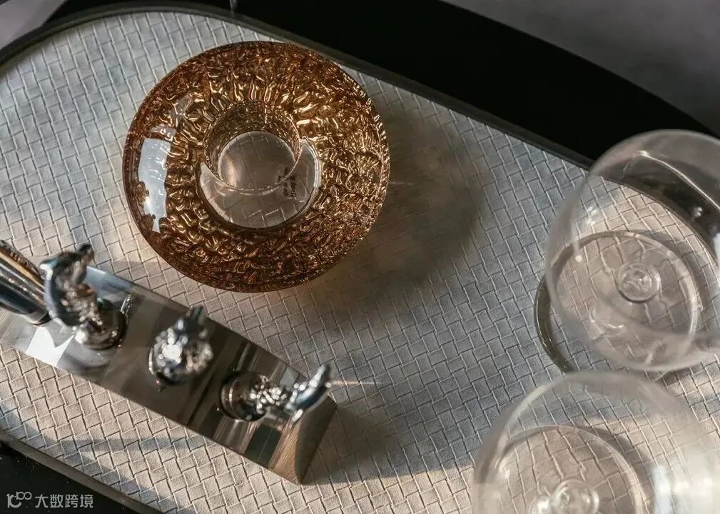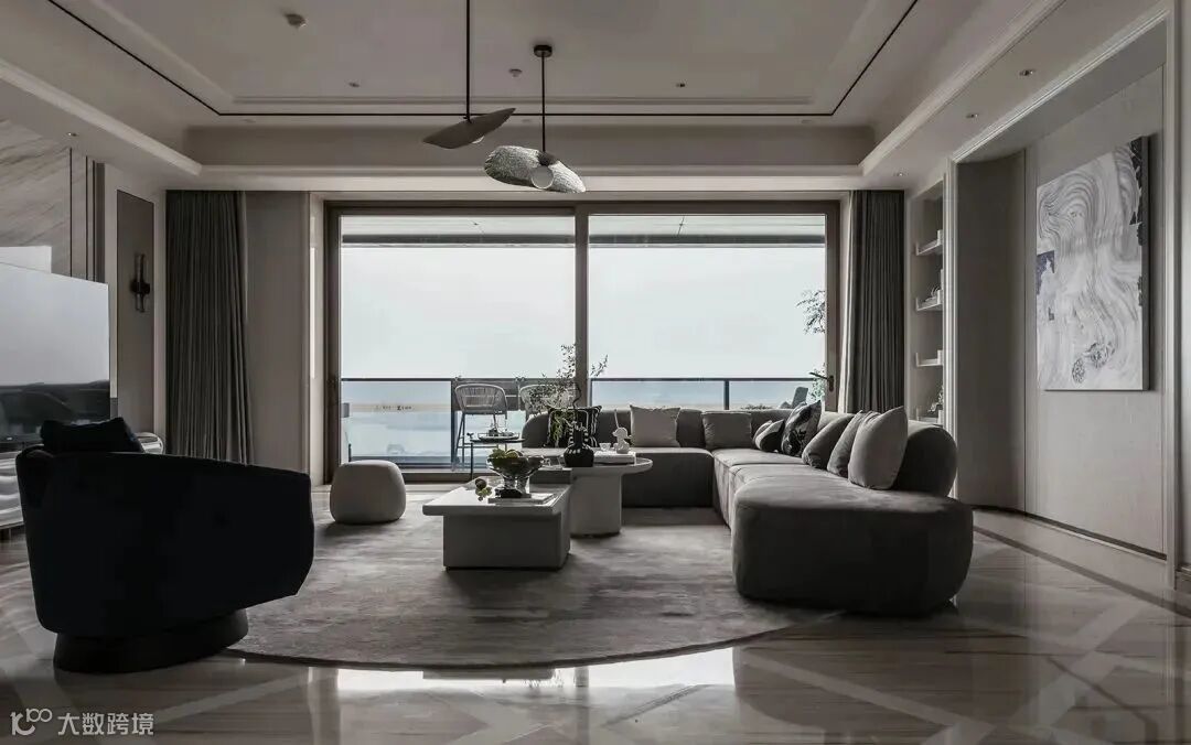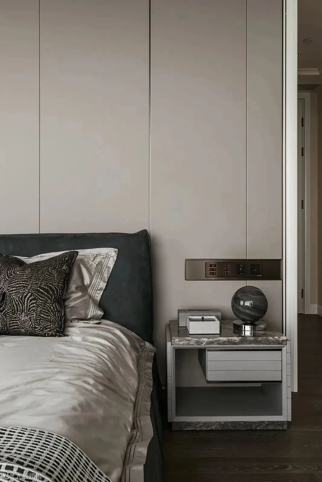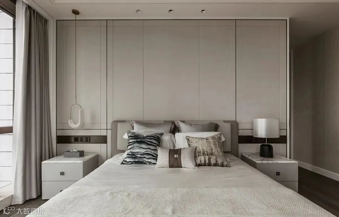 卧室两面墙壁都采用落地窗,有着良好的采光,也能享受到窗外的极致海景,细致的纹理加上丰富的图饰,能抚慰一天忙碌的疲惫,带来闲适和安眠。