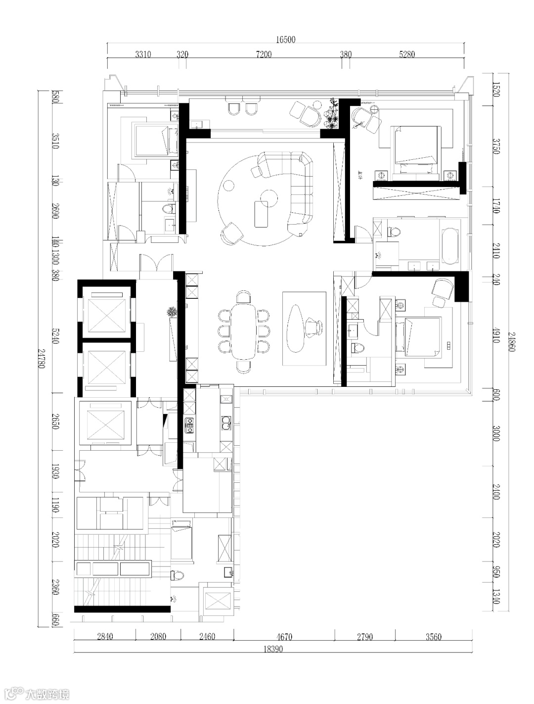 住宅的总面积为320㎡。客户崇尚个性和艺术,所以在设计过程中致力于传递出先锋的当代生活理念,将审美的平衡也达到了极致。