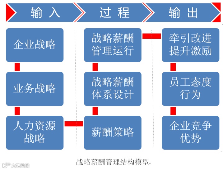 以企业战略为输入条件,通过薪酬策略的导向,系统性地管理薪酬,实现薪酬激励的输出结果。