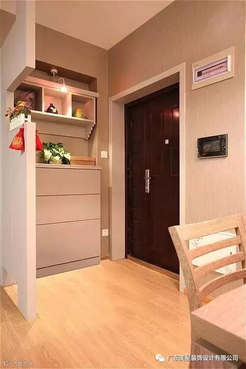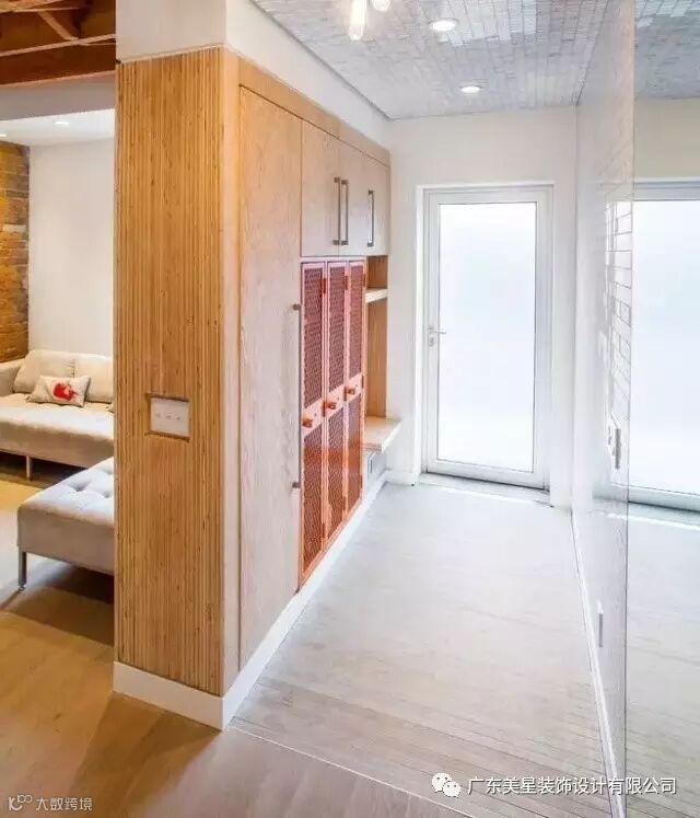 直接将鞋柜做成了一面墙,做隔断来用,没有比这更实用的了。