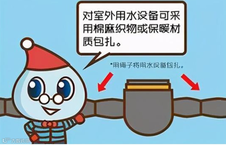 使用棉麻织物、保温棉或泡沫填充剂等材料,对水管、水表、阀门、水龙头等设施进行“穿衣戴帽”,力求包裹严实、保温防冻;高层用户在保证消防所需的前提下,还应将楼道门窗关闭,管廊井保持封闭状态。