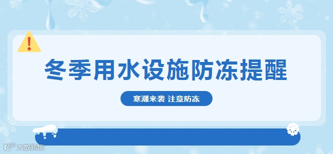 根据马鞍山市气象台最新预报,受冷空气持续影响,近日全市平均气温下降7℃~11℃,23日-24日早晨最低气温-6℃~-5℃。寒潮来临,为保证您的正常用水,首创水务提示: