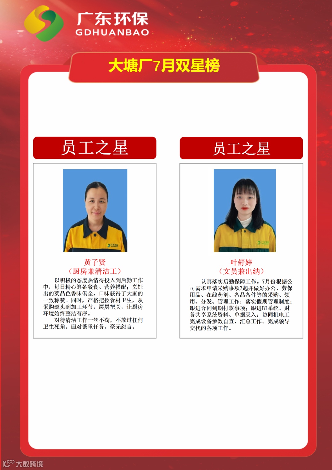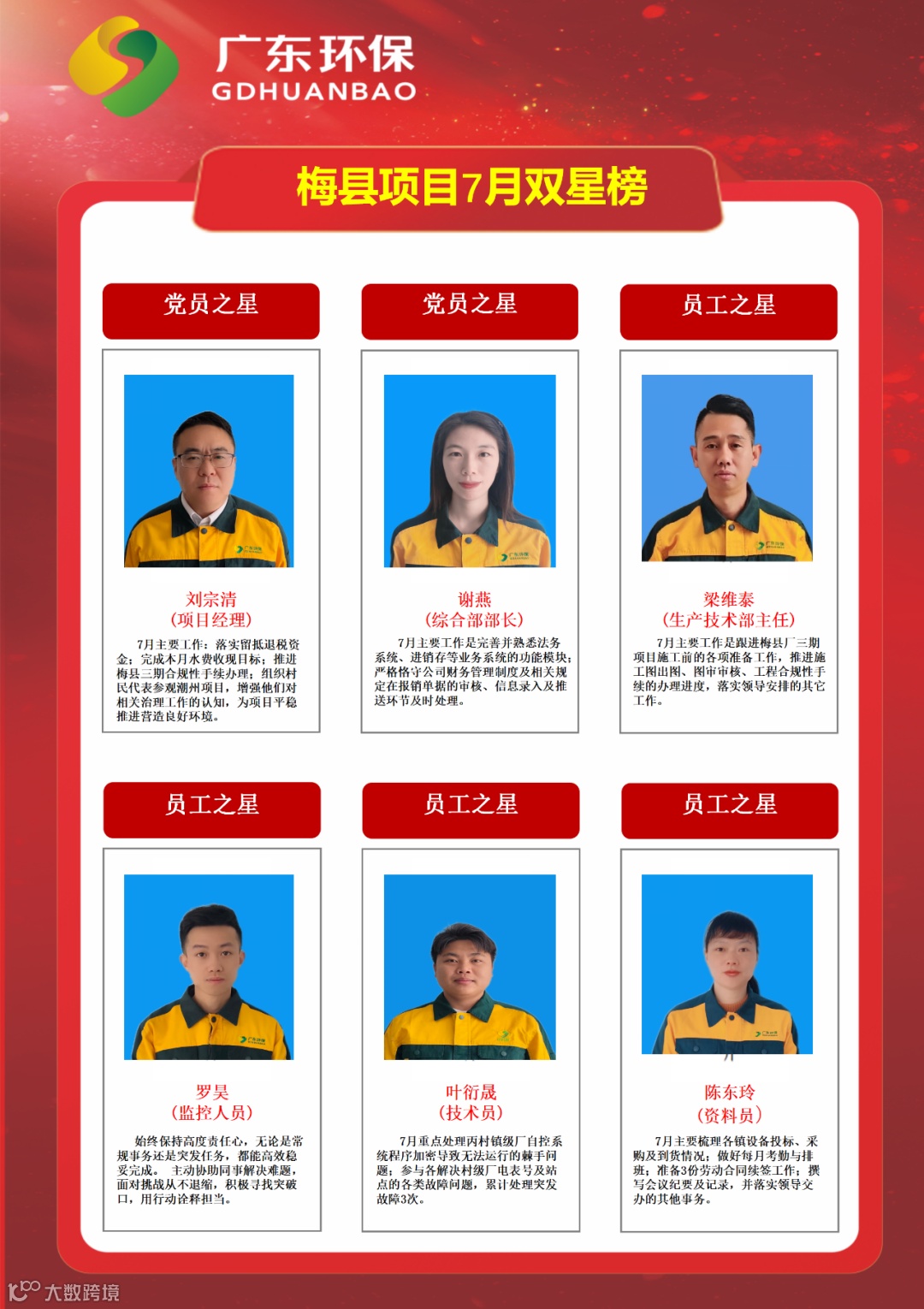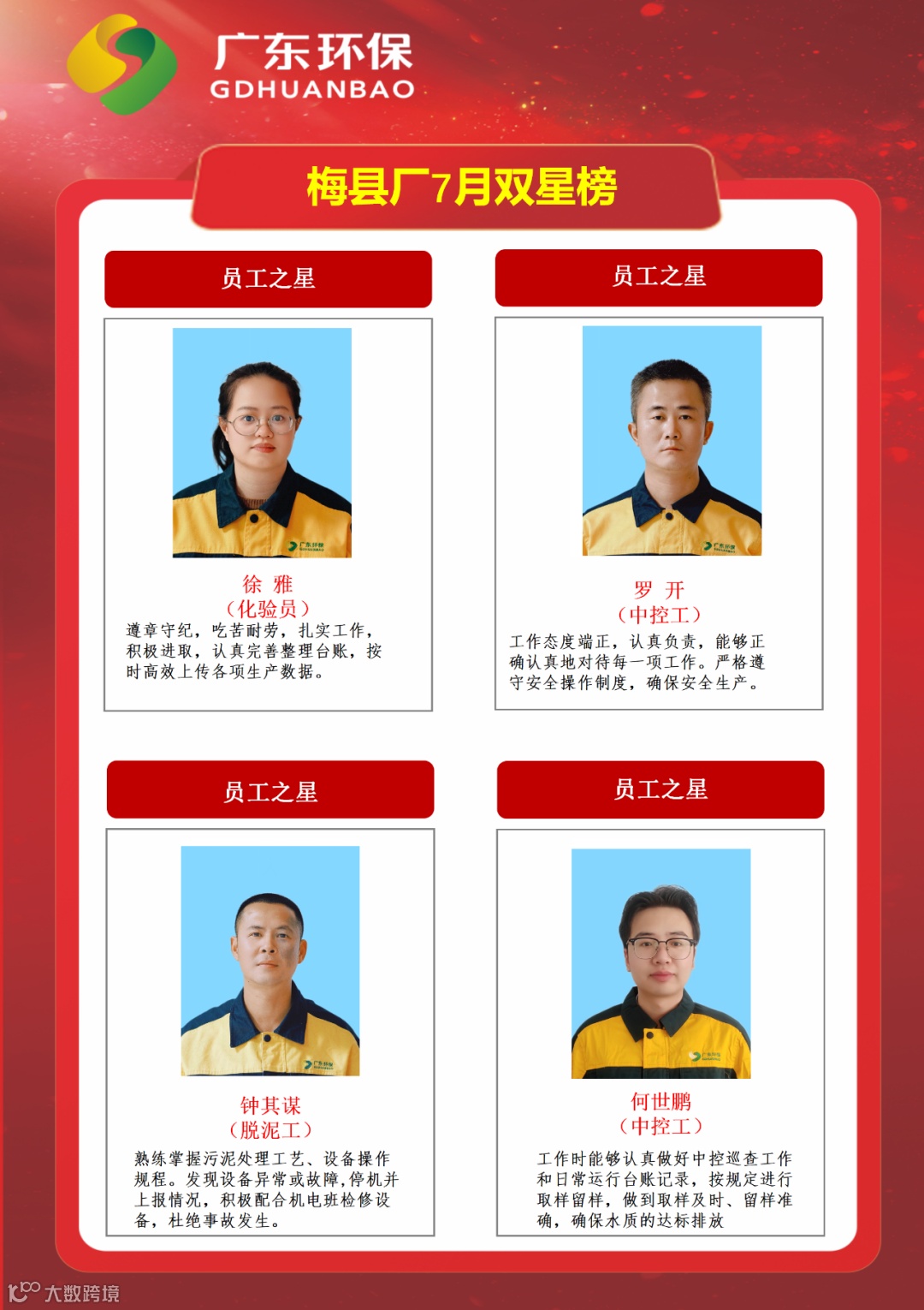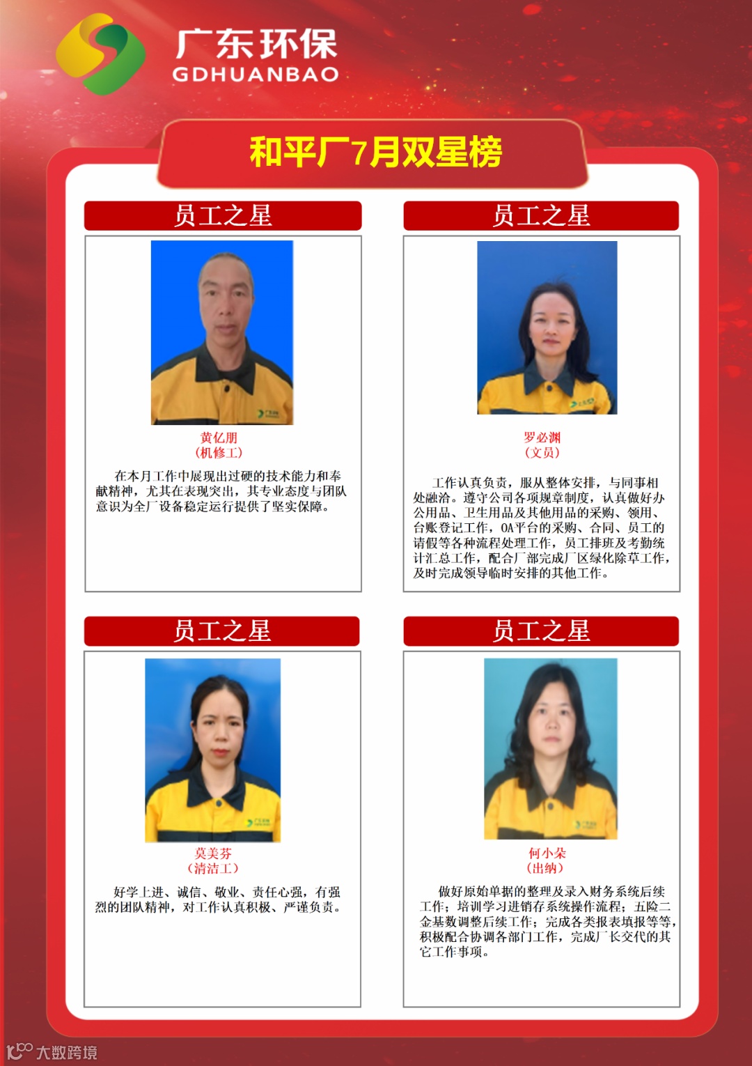 【双星评选】梅河区域中心2025年7月份“双星”评选结果揭晓 广业环保集团梅河区域中心