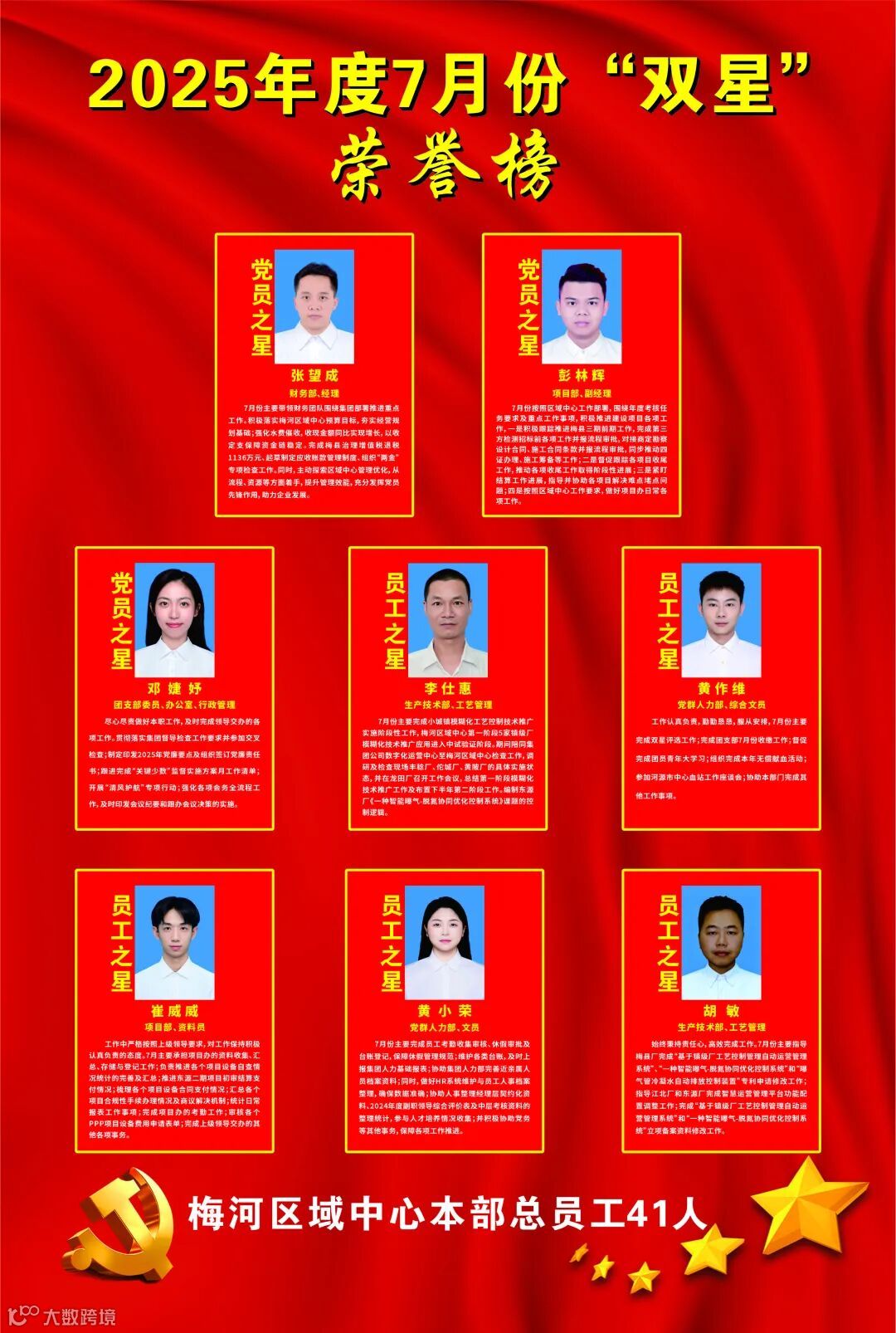 【双星评选】梅河区域中心2025年7月份“双星”评选结果揭晓