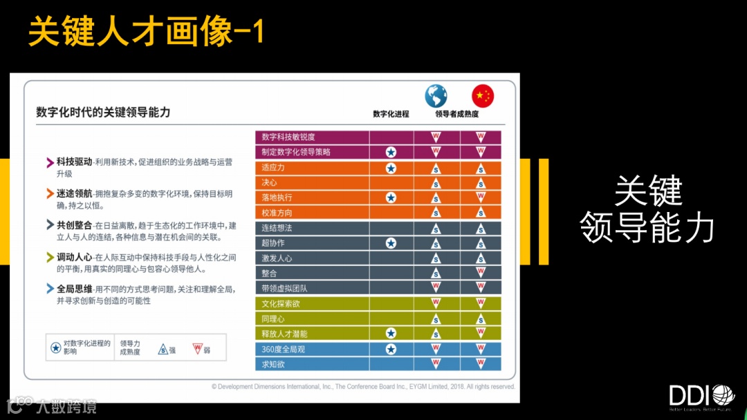 画像一:数字化时代的关键领导能力画像。这是DDI与安永共同研究,得出的能力模型,概括为5大类16项能力。