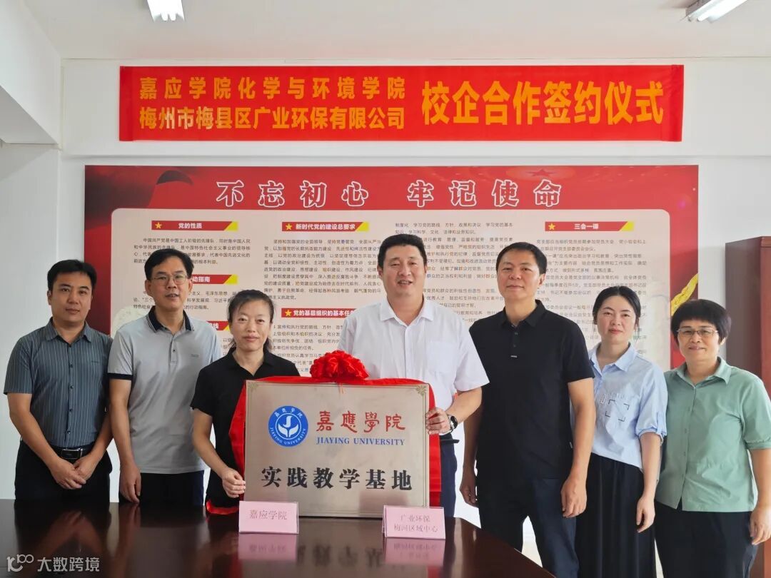 8月16日,广业环保集团梅河区域中心下辖梅州市梅县区广业环保有限公司与嘉应学院化学与环境学院达成进一步战略合作,举办共建实践教学基地签约暨揭牌仪式。