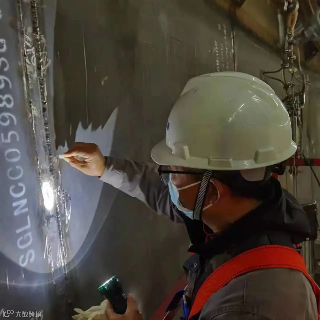 岗位日常:在乌漆墨黑的储罐内,王国生和刘勇借助吊篮高空作业。从LNG储罐最底下一米一米往上到穹顶,从LNG储罐环缝一处一处到立缝,他们用手电筒照明检查储罐壁板,不放过任何存在咬边、弧坑、焊瘤、余高超标等瑕疵,并开具《整改通知单》,督促施工单位落实整改。
