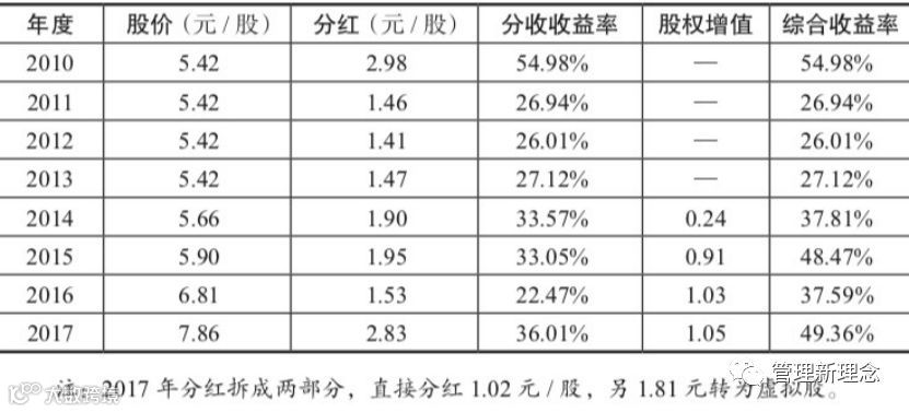 企业所有激励机制的设立,都必须同时配置压力传导机制,否则要么无效,要么最终走向福利化。华为股权激励的奥秘在于两个方面,一是持续的高配股和分红,每年分红收益率基本在25%以上,加上增值后的综合收益率在30%左右(见下表),这么高的投资回报率傻瓜才不配呢!但是高配股需要员工支出大量的资金,自己资金不足时,还需要向亲戚朋友借贷,或向银行等机构融资(2012年起银行不再提供非上市公司股权质押融资),债务负担让员工心无旁骛努力工作。二是饱和配股,你不努力奋斗争取升职,就会停留在顶格线上,眼睁睁地看着别人大把配股、大量分红。