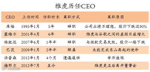 更加奇葩的是,雅虎22年换了7任CEO,最长的任期6年,短的仅4个月就被董事会赶下台。