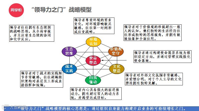 环境认知:领导者尊重环境的要素变化,对环境影响极其敏感,往往第一时间形成应变战略。