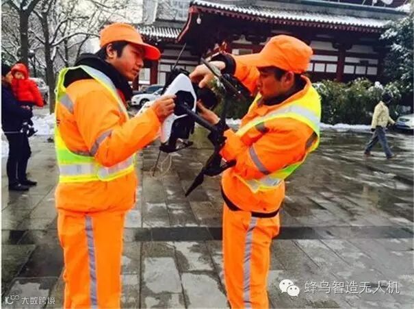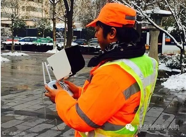 ······ 照片中的这个小家伙,可不简单,是专门的环卫作业无人机。经过升级改造的它配备了10倍电焦镜头,可在150米的高空上,清晰地发现街面上极小的垃圾和抛洒物。支持两人协同操作,有可能在环卫工作中普及。