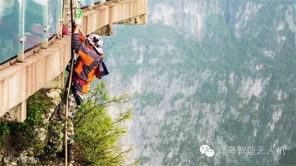 在湖南张家界天门山景区,环卫工的主要工作就是负责清扫玻璃栈道下方的垃圾。