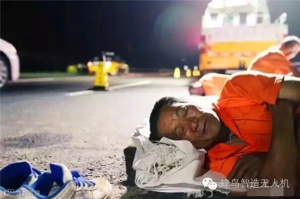 为了应对可能到来的暴雨,蜿蜒千米的养路工人就这样等待了一个晚上,连睡觉都只能睡在路上。