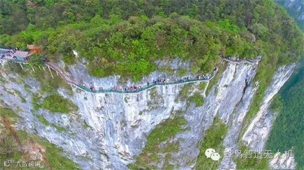 ··· 玻璃栈道沿着山体环绕构筑,悬于1400余米的悬崖峭壁之上,很多游客走在栈道上都战战兢兢,不敢向下张望。