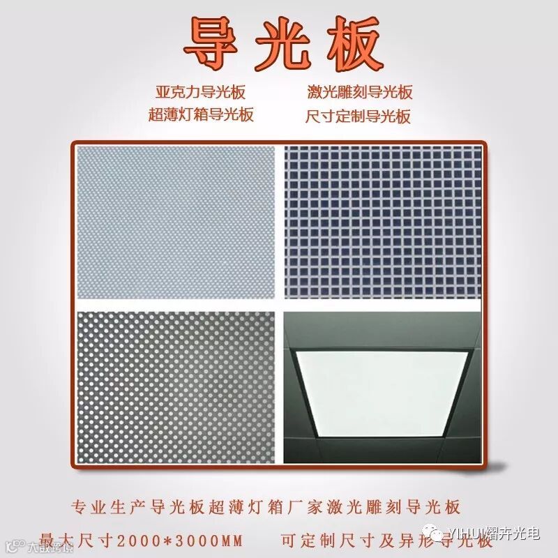 导光板是光源传播的一种介质,以光学级PMMA亚克力为基材,采用高端的3D激光雕刻工艺,通过数控电脑计算设计排布,在亚克力的底面加工激光网点或雕刻网线,当光源从侧面进入导光板射到点或线时,反射光会往各个角度扩散,然后再漫反射到导光板表面,利用疏密排列分布不同的网点或网格,是导光板整面均匀发光。导光板是将侧光源转化成面光源的高科技产品,具有超薄高亮、光线均匀柔和、节能环保、外形定制,安装简便等鲜明特点。
