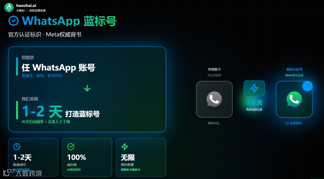 普通号就像黑户,风控系统一看就知道是营销号。蓝标号就不一样了,它是WhatsApp官方认证的商业账号,显示“官方商业账号”,发消息被判定为“商业沟通”,不是垃圾营销。