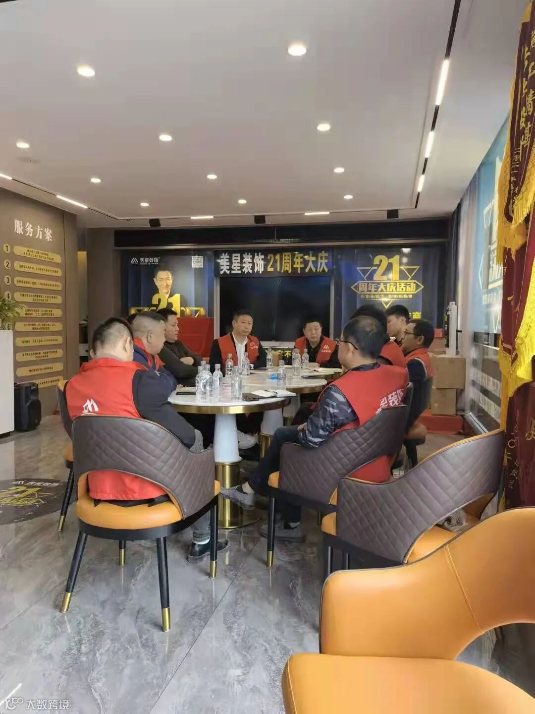巡检总结会议上,御鼎国际朱总与美星川渝地区分公司的管理层对此次巡检过程中发现的施工问题、工艺质量问题、回访业主的反馈、一线师傅的意见等进行汇报总结,并针对具体问题提出改进意见和解决方案。