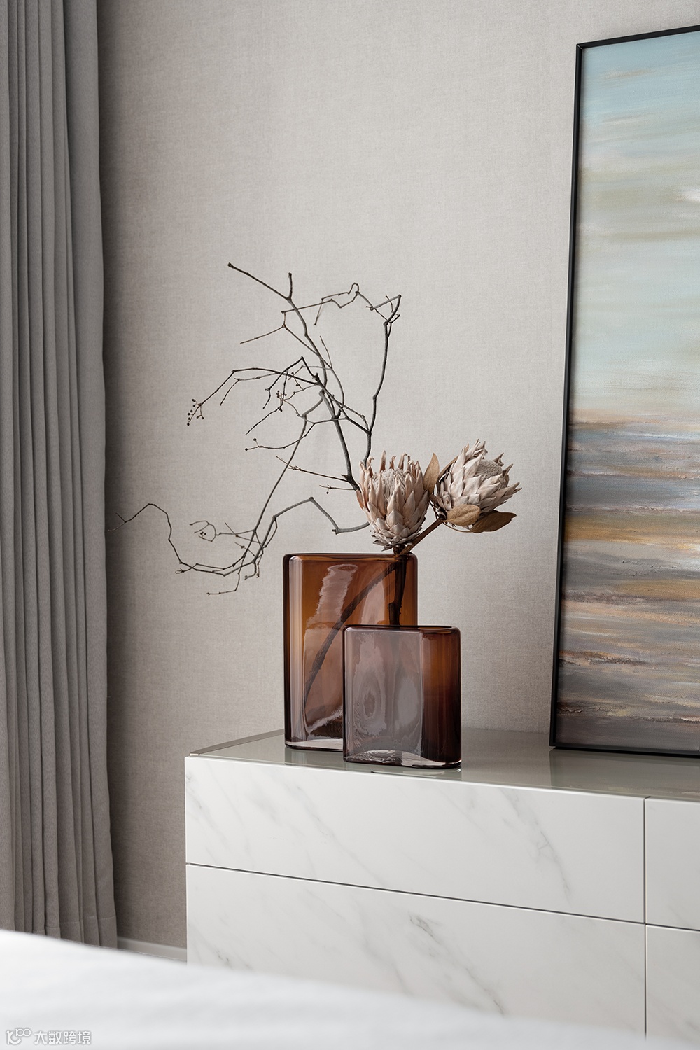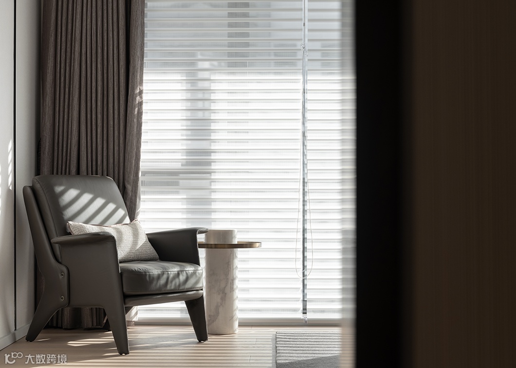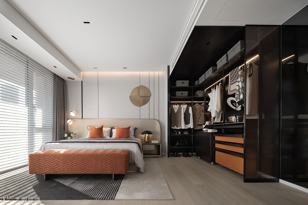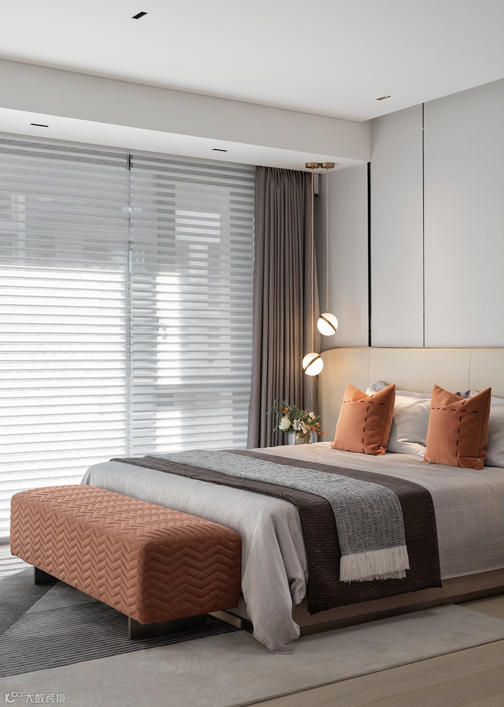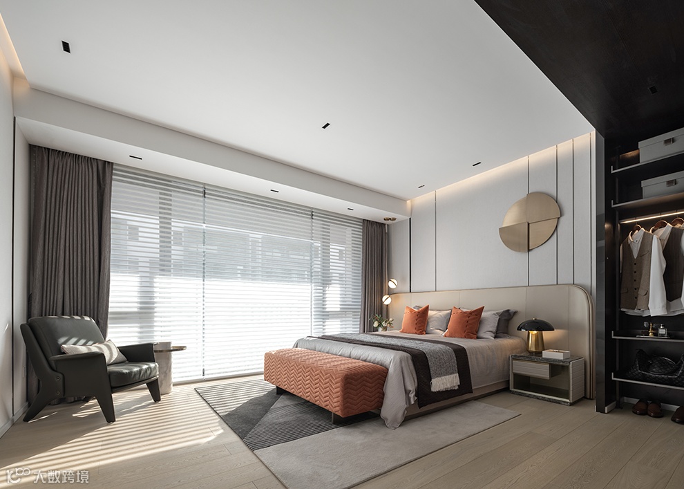 光感澈亮的主卧,沉淀一体两面的大城品位,一面是向阳而生的自然与舒旷,一面是凝炼都市繁华的时尚和经典。