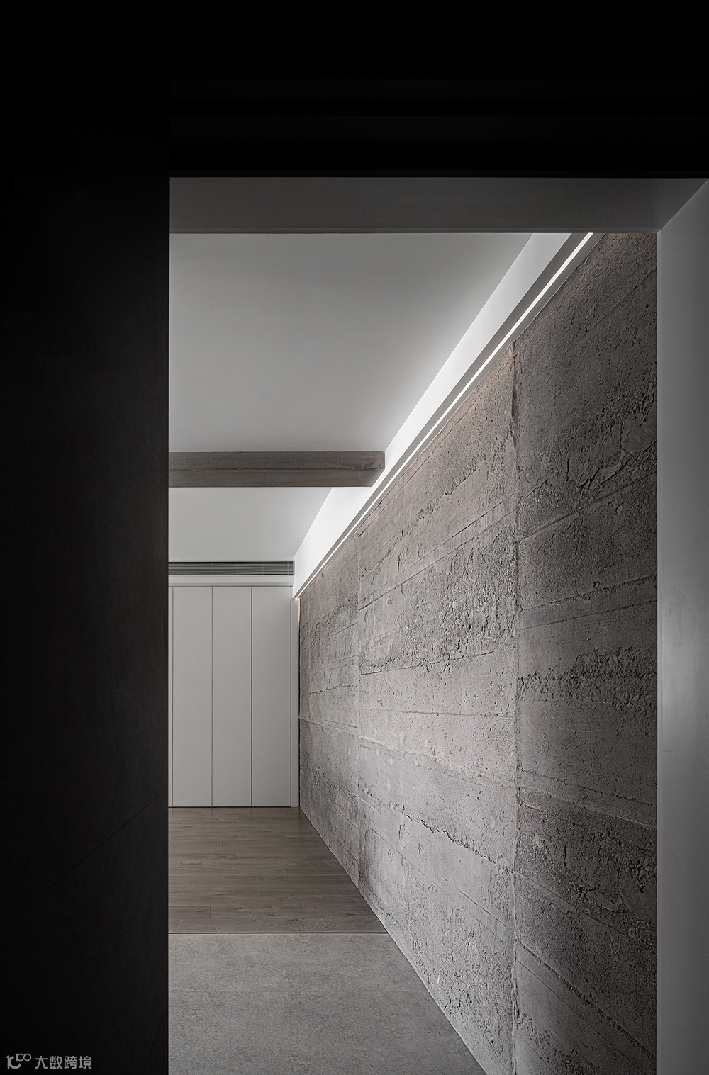 从入户门进入,第一眼就会被这面仿岩板的装饰墙面吸引,看似粗糙却极有质感,瞬间被这看体现贴近自然贴近生活的主基调拥抱。