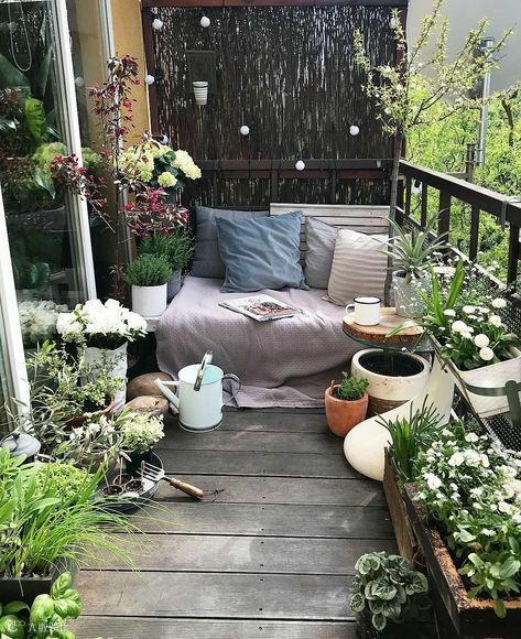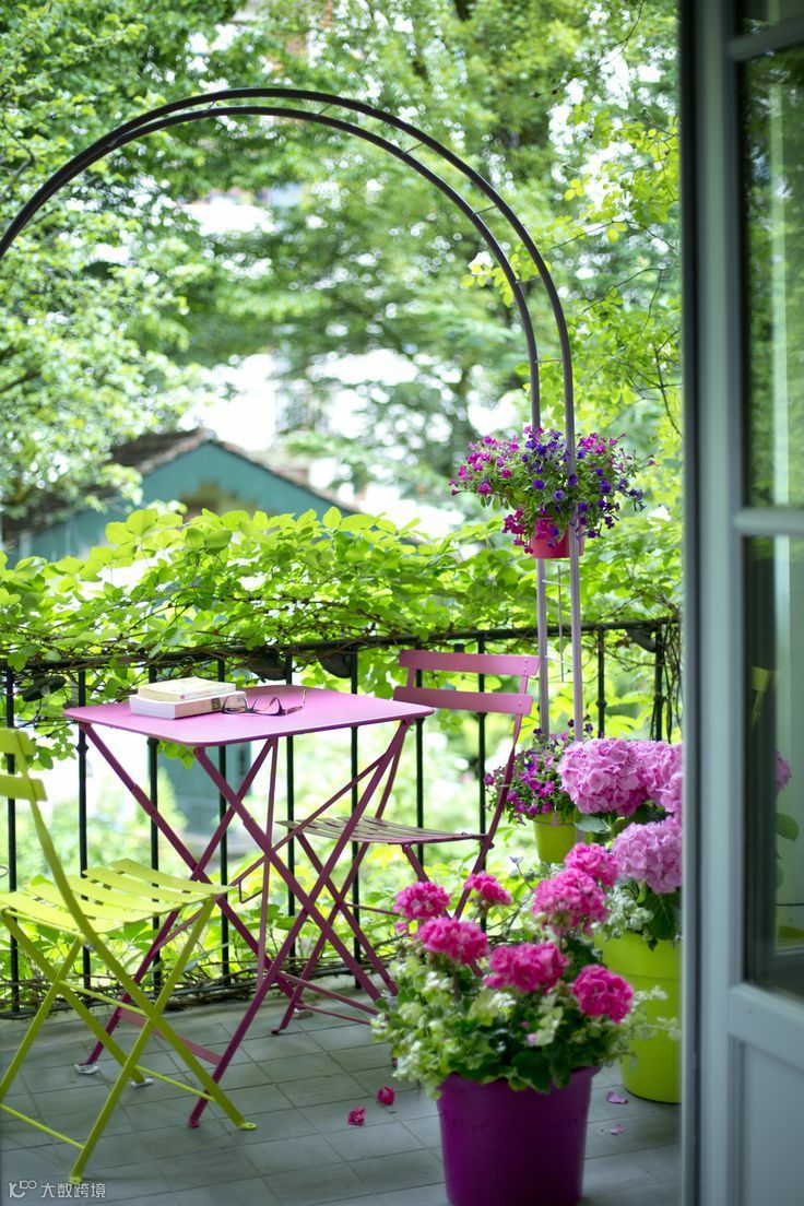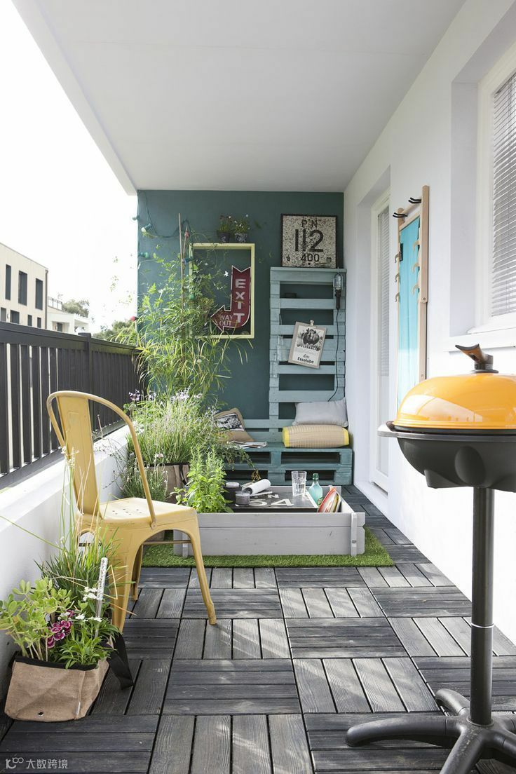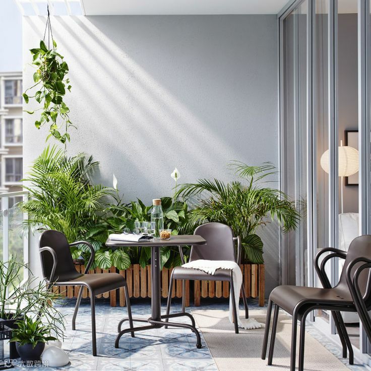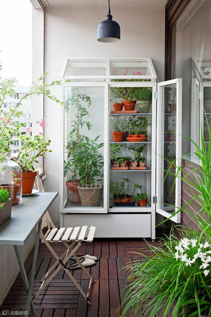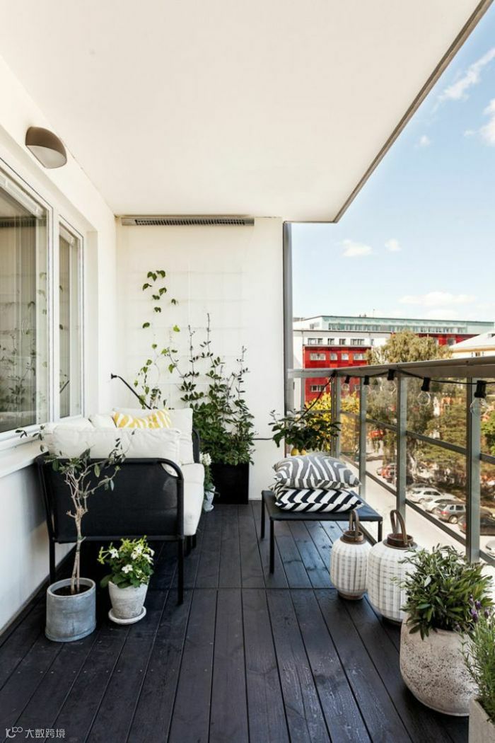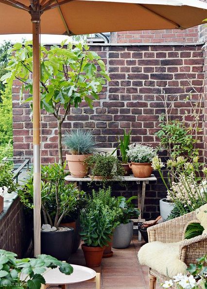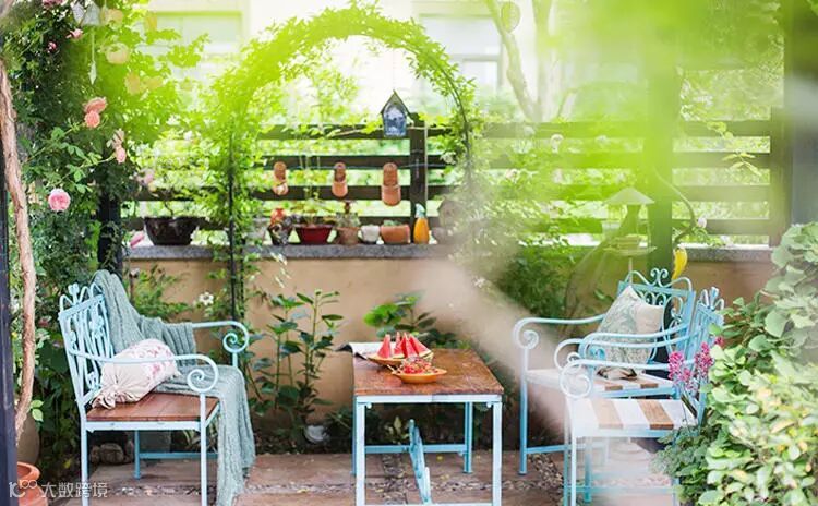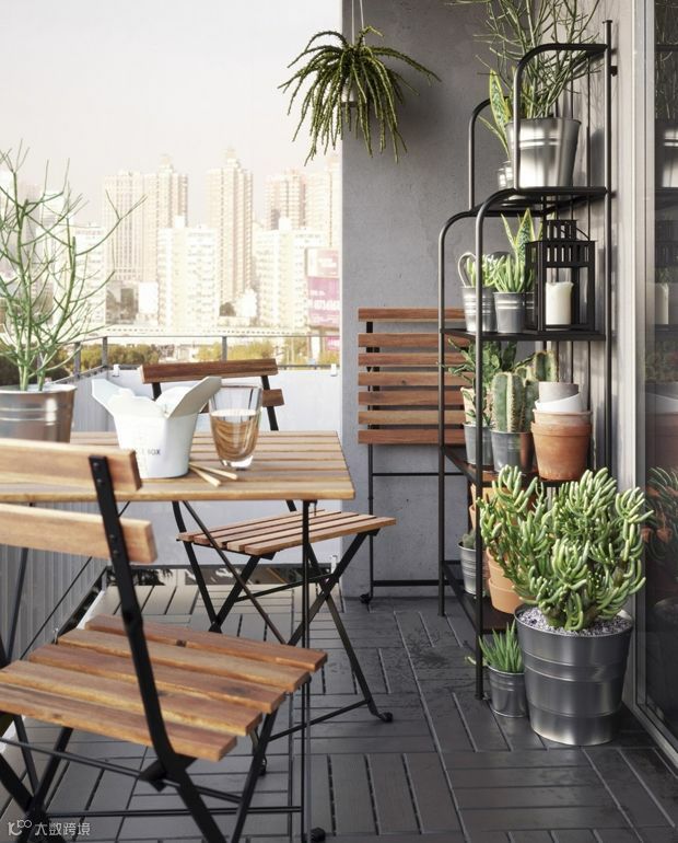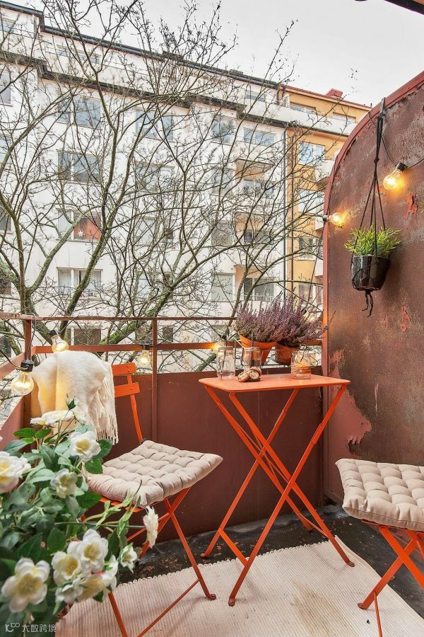 如果你喜欢植物,错落有致地摆放不同形状大小的植物、饰物,打造一块绿意盎然的阳台花园。折叠的小桌椅,配上灯光,就是秘密花园的感觉了。