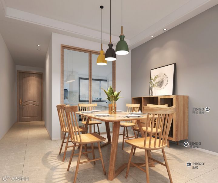 硬装主材 :①全抛釉800x800;②开关面板;③过道波打线;④地脚线