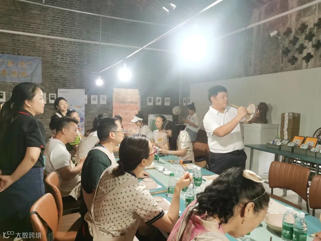 来到陶宝古街的“菊坡书院”,我们聆听了来自荣昌陶文化研究院发起人、渝商博物馆馆长讲述安陶非遗文化历史,并展示制作陶碗的要领和技巧,大家在了解传承千年的荣昌陶文化的同时,亲手体验和打造自己喜爱的陶制品,这既是一种传统文化的体验,也是一种工匠精神的传承。大家手捧碗胚,描笔上釉,兴致盎然的亲手绘制着属于自己独创的陶碗,一笔一画都对未来生活寄予着美好憧憬,欢声笑语中一只只独具创意的陶碗被大家描绘出来,敬请期待成品之作在历经烈火淬炼后的完美呈现。