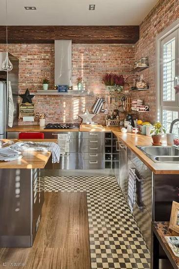 想把裸砖墙用到厨房,可是又担心裸砖墙带来的工业气息太冰冷,不够温馨?其实这种担心完全是多余的,裸砖墙的厨房在冷酷中也可以带有温情,复古怀旧的同时也能完全融入现代化的家,运用这些时尚小心机,你也能打造一个独具魅力的裸砖墙厨房。