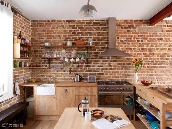 用精美的挂画装饰墙面,或者利用墙面进行收纳,裸露的砖墙不再单调,而是厨房里最具特色的部分。
