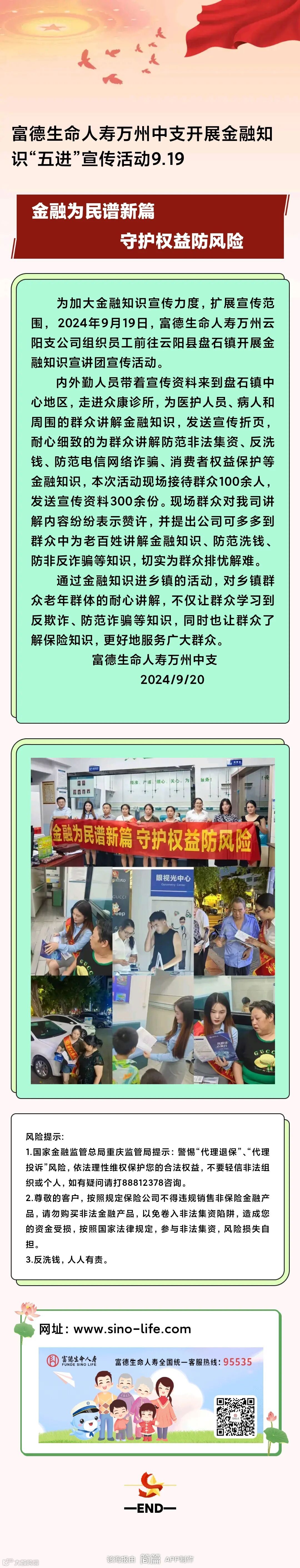 金融教育宣传月|富德生命人寿万州中支开展金融知识五进宣传活动(一)