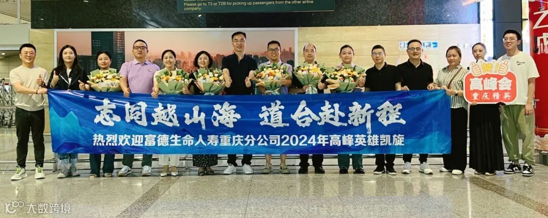 2024年9月27日中午,参加总公司2024年业务高峰会的重分精英载誉归来,分公司总经理徐红永、副总经理李远兵、总经理助理谢勇、黔江中支总经理曹新春及分公司相关部门负责人,亲赴江北机场迎接高峰英雄返渝,送上鲜花,并举办荣誉宴接风洗尘,期许各位英雄继续勇往直前,开拓创新,来年再攀新高峰。