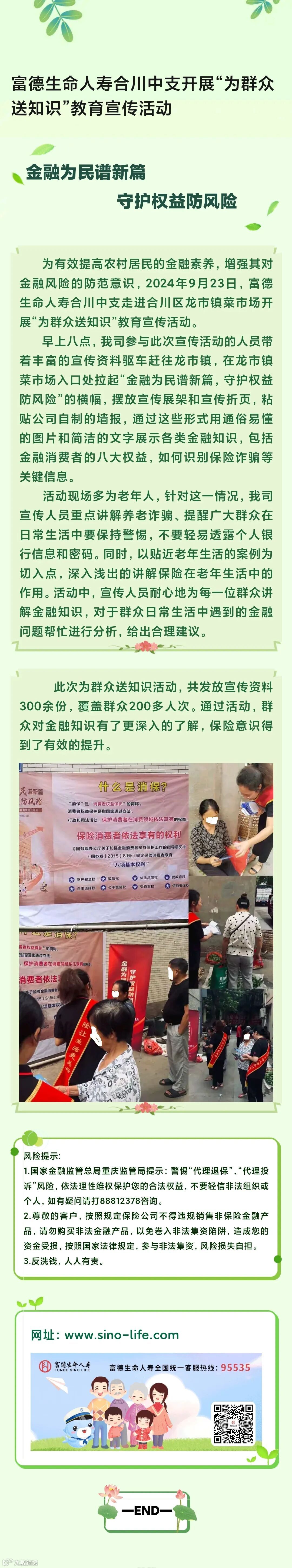 金融教育宣传月|富德生命人寿合川中支开展为群众送知识教育宣传活动