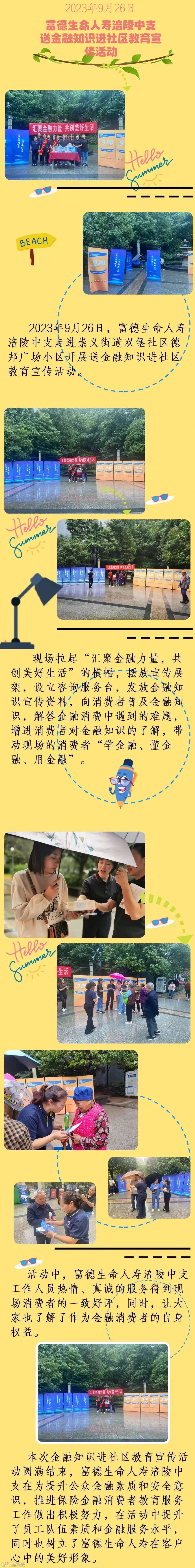 金融消保教育宣传月丨富德生命人寿涪陵中支送金融知识进社区教育宣传活动