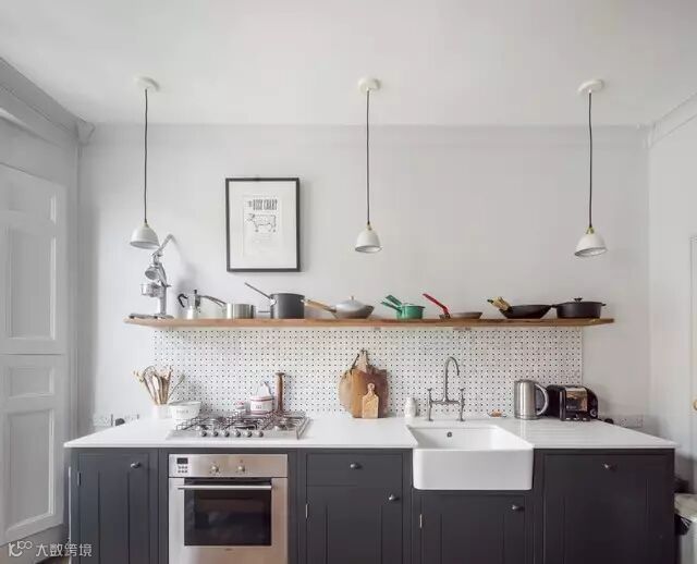 隔板架、洞洞板都很适用于开放式收纳,不过对于小户型的厨房来说,这种外在收纳空间要精简,做点缀就好。
