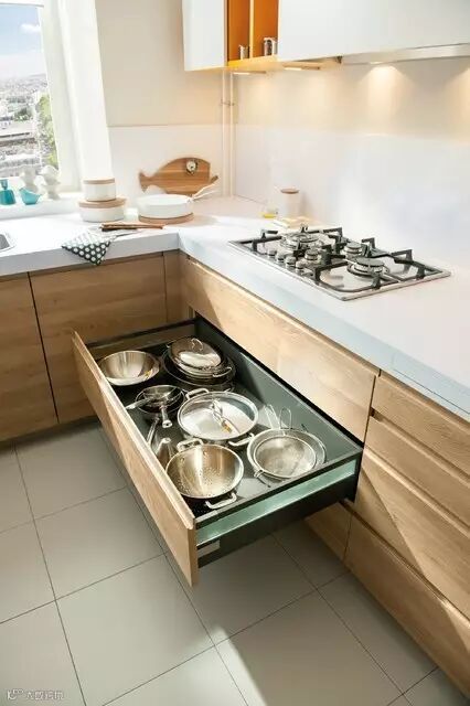分类收纳无论放在哪里都是非常讨巧的技能,厨房的分类收纳无非就是锅碗瓢盆,最实用的其实就是抽屉收纳,长度相同的工具归类到同一个地方,零碎少用的工具也放同一个地方。这样找起来又快又方便。