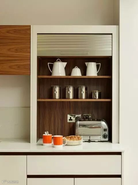 相比传统的大面积收纳墙体柜,这种不同大小的空间收纳用起来更顺手!常用的东西直接放在开放式的收纳方格中,取放的时候真的超级方便!晚上煮夜宵也不用再蹑手蹑脚的怕打扰家人。